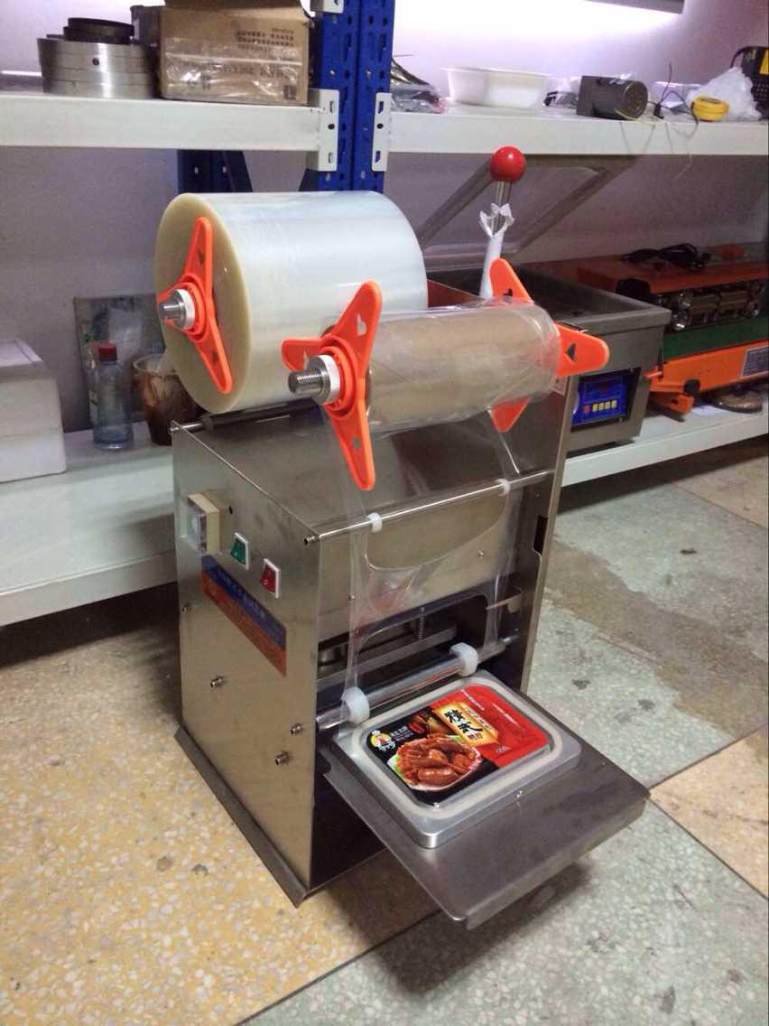 快餐盒封口機(jī)有自動(dòng)、半自動(dòng)供用戶選擇.適用于PP、PE、PET,等材料的包裝 適用于盒子,長方盒、正方盒的封口,可根據(jù)客戶的需求來定做,可看到封口膜的轉(zhuǎn)動(dòng)。